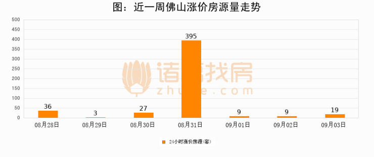 根据诸葛找房数据显示,佛山24小时涨价房源量为19套,较09月02日增加10套,环比上涨111.1%。与此同时,涨价房源占比小幅扩大,业主信心有所提升。