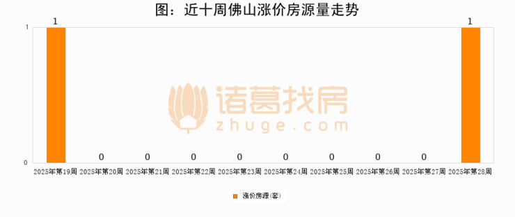 从调价房源来看,第28周佛山涨价房源1套,较上周上涨0%。与此同时,28周涨价房源占比持平