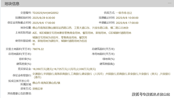 此外,宗地范围内除了须配建相关道路用地和开发公园绿地外,还须在宗地红线外,位于工贸大道以东、横二路以南、环站北路以西、西站北路以北的教育用地上配建佛山市南海区石门外国语学校北校区。