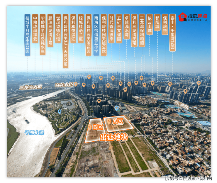 从航拍图来看,地块东临平洲水道,东南边则为半月岛公园,坐拥绝佳景观,生态环境优越。