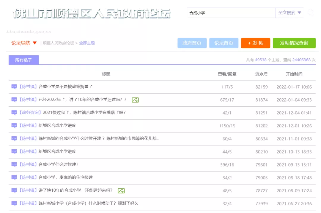 而区域内规划的陈村新城合成小学,多年来进展缓慢,从顺德区人民政府论坛上,当地居民反复询问就可以看出,对这所学校的迫切希望。