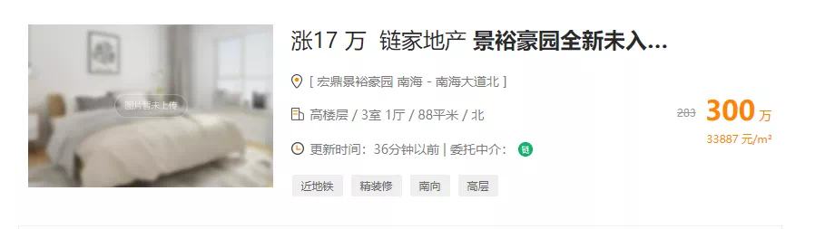 此前,总价为283万;现总价为300万,二手均价去到33887元/㎡。
