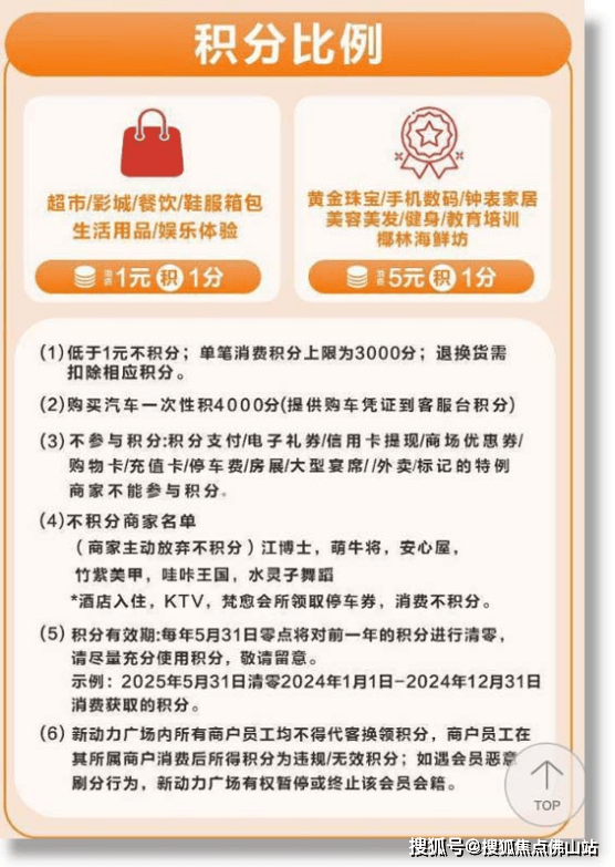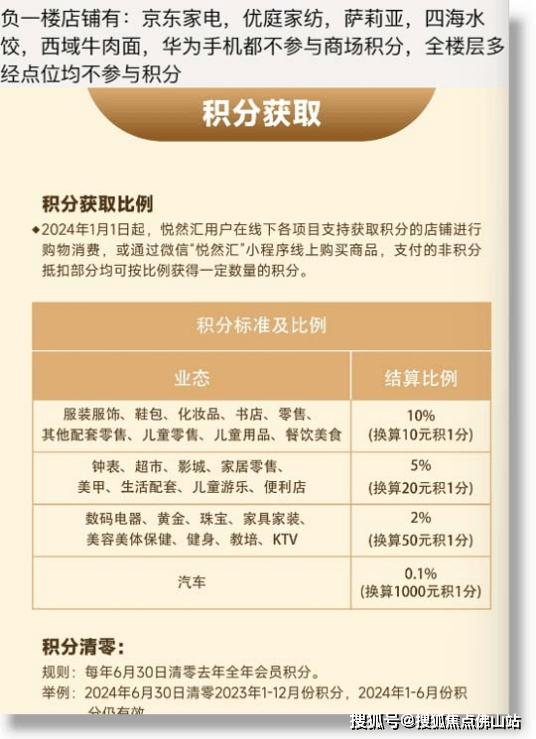 服装服饰、鞋包、化妆品、餐饮等10元积1分。