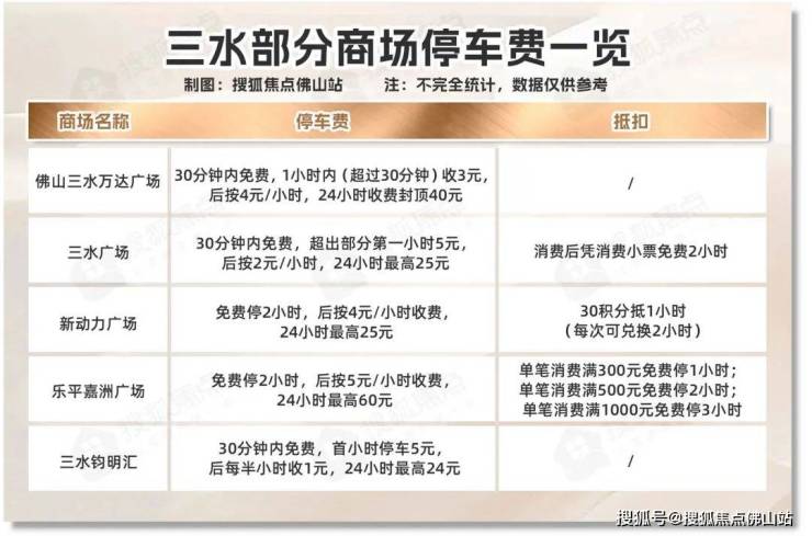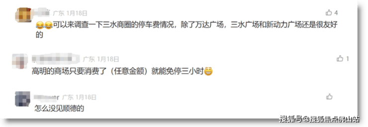 三水万达、三水广场、三水钧明汇则是免费停半小时。