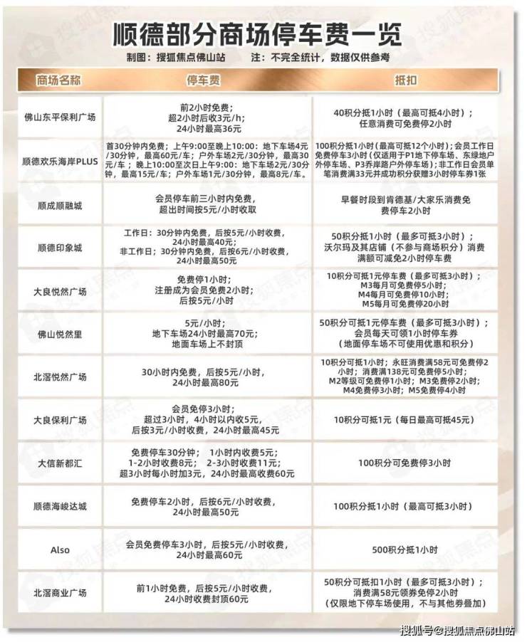 佛山东平保利广场、顺成顺融城、大良保利广场、顺德海峻达城 等商场都能免费停2-3个小时。