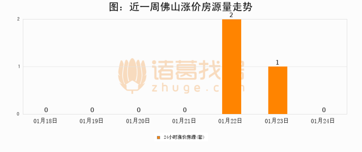 根据诸葛找房数据显示,佛山24小时涨价房源量为0套,较01月23日减少1套,环比下降100%。与此同时,涨价房源占比小幅回落,对于购房者来说是一个入市窗口期,购房者可抓住时机入市。