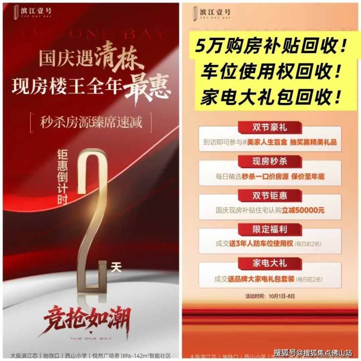 越秀星汇灯湖于10月9日起,价格全线上调2%,滨江壹号则于节后回收5万购房补贴、车位使用权、家电大礼包等。