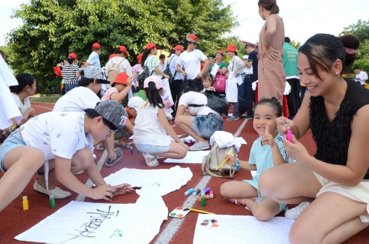 在徒步开始前,由工作人员免费派发白色的文化T恤,参与徒步的市民首先通过环保手印染料进行DIY,绘制属于自己的标记。可以看到活动的参与度是非常高的,不少市民一家大小都出席共同为健康代言。
