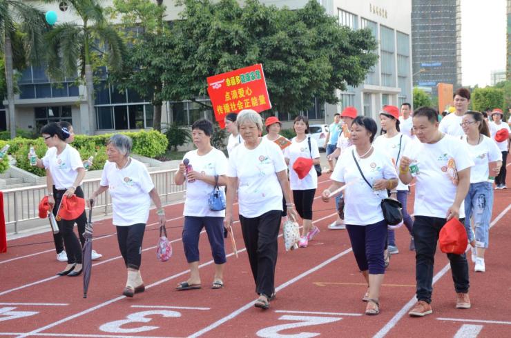 徒步进行时,不仅有吉祥物“小萌珑”陪伴大家一起做公益慈善,很多长者们也是身体力行地参与进来,很多小伙伴更是慢跑起来。不少市民更是表示“以后要多组织这方面的活动,通过做运动又要能做慈善,一举两得!”