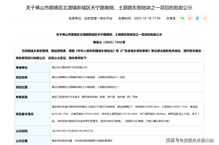近日,佛山市自然资源局顺德分局发布了关于佛山市顺德区北滘镇新城区天宁路南侧、土荫路东侧地块之一项目的批前公示。