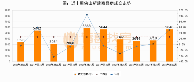 【佛山成交周报】第39周新房成交5648套,二手房2892套,涨价房源407套