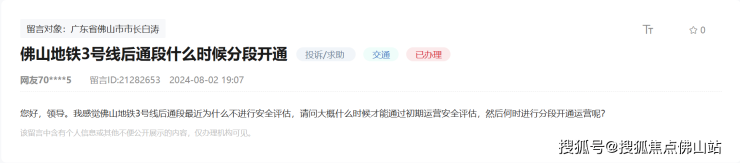 近日,有多位网友在人民网领导留言板咨询:佛山地铁3号线后通段的安全评估何时开展?后通段何时开通?