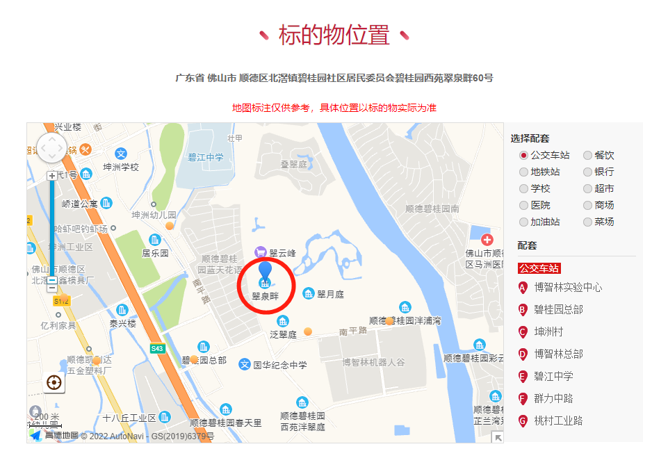 据拍卖网站数据显示,这套别墅具体位于北滘镇碧桂园社区居民委员会碧桂园西苑翠泉畔60号,套内建筑面积268.86㎡,独用土地面积538.07㎡。