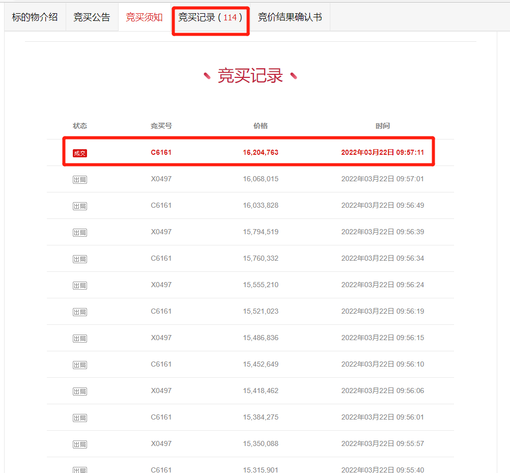 一天时间内,经历了114轮激烈竞价后,最终被一位神秘富豪出价1620万成功拿下,溢价率近137%,折算均价60272元/㎡!