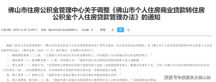 12月30日,佛山市住房公积金管理中心关于调整《佛山市个人住房商业贷款转住房公积金个人住房贷款管理办法》的通知。