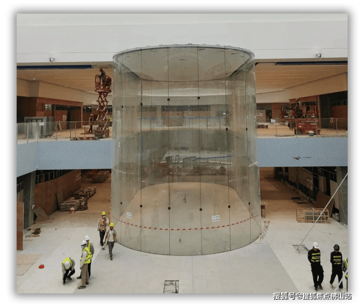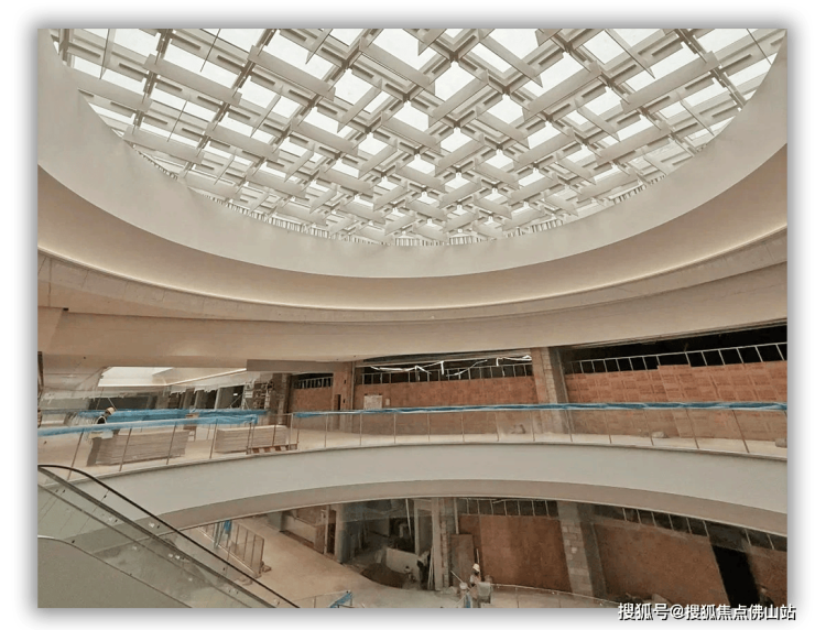 而从网友流出的内部谍照来看,商场内部的硬装已基本完成,中庭为圆形结构,天花板采用透明玻璃建造,另一侧还有巨型的玻璃穹顶。