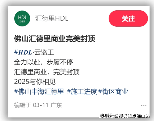 3月11日,中海汇德里在小红书平台上宣布,汇德里商业完美封顶,预计今年四季度开业。