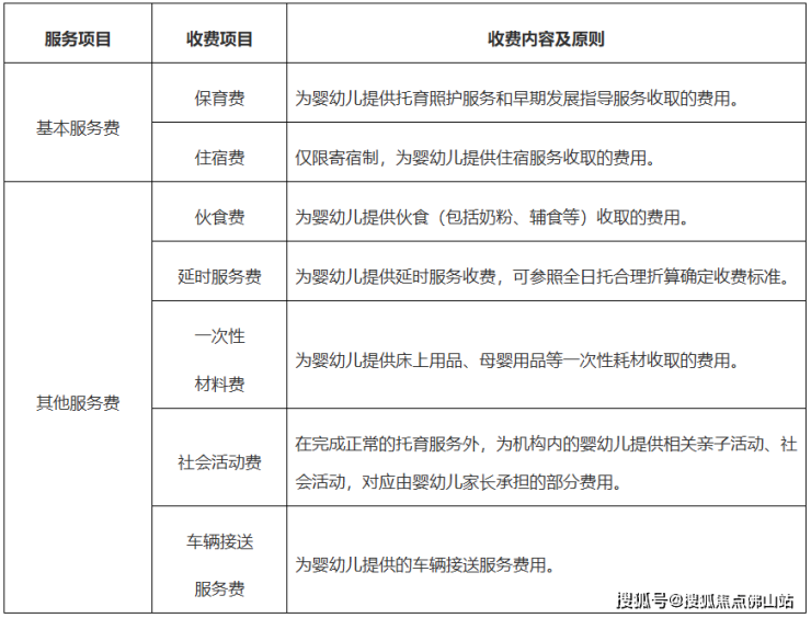 在收费管理方面,《通知》明确普惠托育服务机构收费包括基本服务费和其他服务费。其中,基本服务费包括保育费、住宿费(仅限寄宿制);其他服务费指在基本服务费外,服务机构收取或代收的伙食费、材料费等其他费用。