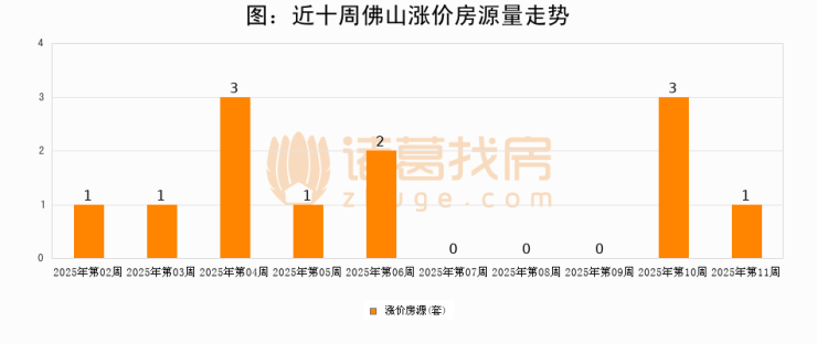 从调价房源来看,第11周佛山涨价房源1套,较上周下降66.7%。与此同时,11周涨价房源占比回落15.05个百分点,业主信心小幅波动,购房者可则需入市。