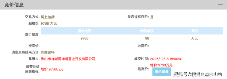 9788万成交!酒店+金融总部!禅城城建夺得祖庙商地