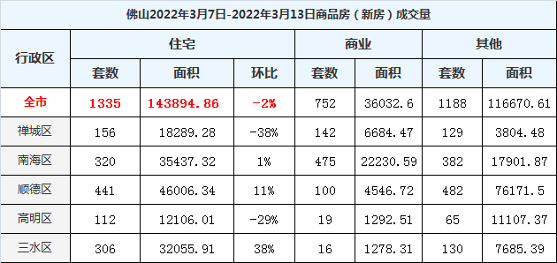 平稳!上周佛山新房成交1335套 二手网签638套