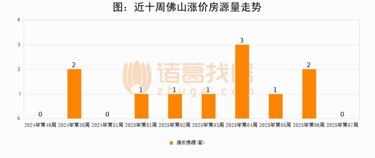 从调价房源来看,第7周佛山涨价房源0套,较上周下降100%。与此同时,7周涨价房源占比回落13.33个百分点,业主信心小幅波动,购房者可则需入市。