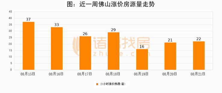 根据诸葛找房数据显示,佛山24小时涨价房源量为22套,较08月20日增加1套,环比上涨4.8%。与此同时,涨价房源占比小幅扩大,业主信心有所提升。