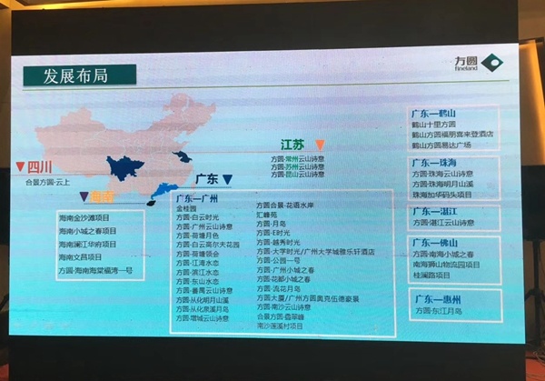 方圆地产成立于1997年,今年正值20周年,集团以“立足广州,深耕广佛,开拓海外”的发展理念,在国内已布局广东、江苏、四川、海南四个省份,合计开发了47个项目,而广东省就占了80%。