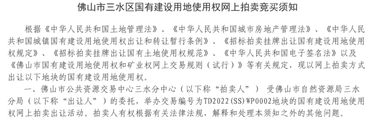 近日,从佛山公共资源交易网获悉,三水新城一宗占地7045.38㎡的迷你商服地正式挂牌,起拍价4410万,折合起拍楼面价2503.8元/㎡,拟于3月22日14:30进行网上竞价。