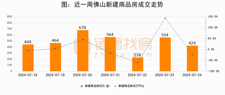 【佛山成交日报】07月24日新房成交424套、二手房496套;涨价房源28套