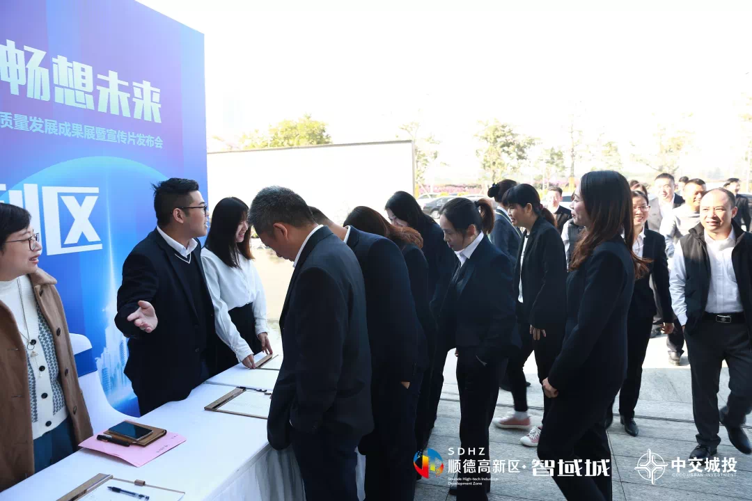 12月10日上午,由中交城市投资(广东顺德)有限公司主办,顺德高新技术产业开发区管理委员会指导的“城就美好 畅想未来”——顺德高新区城市综合开发项目高质量发展成果展暨宣传片发布会在顺德高新区·智域城中交·诚湾悦府营销中心举行。