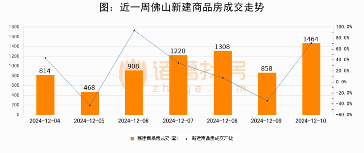 【佛山成交日报】12月10日新房成交1464套、二手房598套;涨价房源1套