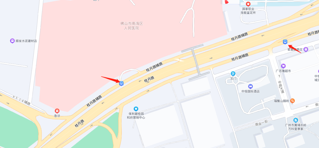 环线上车点:新南海医院站、新南海医院(南海信息技术学院)站(中恒海晖城门口)