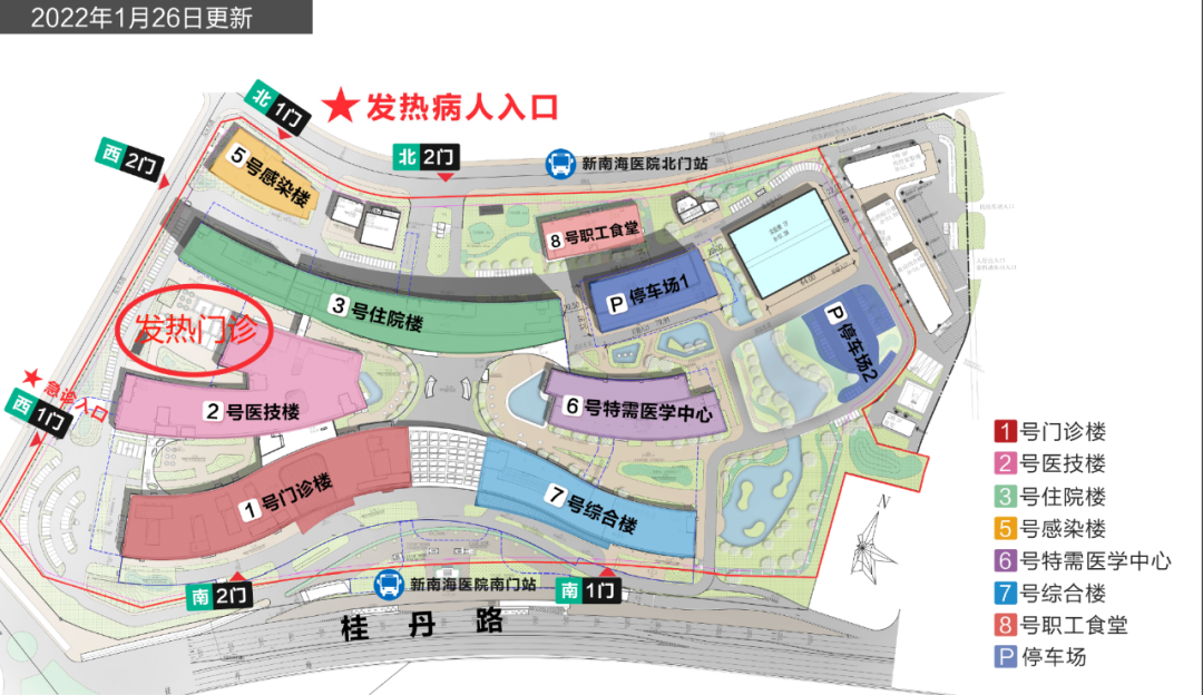 4.发热门诊就诊患者请从医院北2门驶入地面,停泊在发热专用停车位。