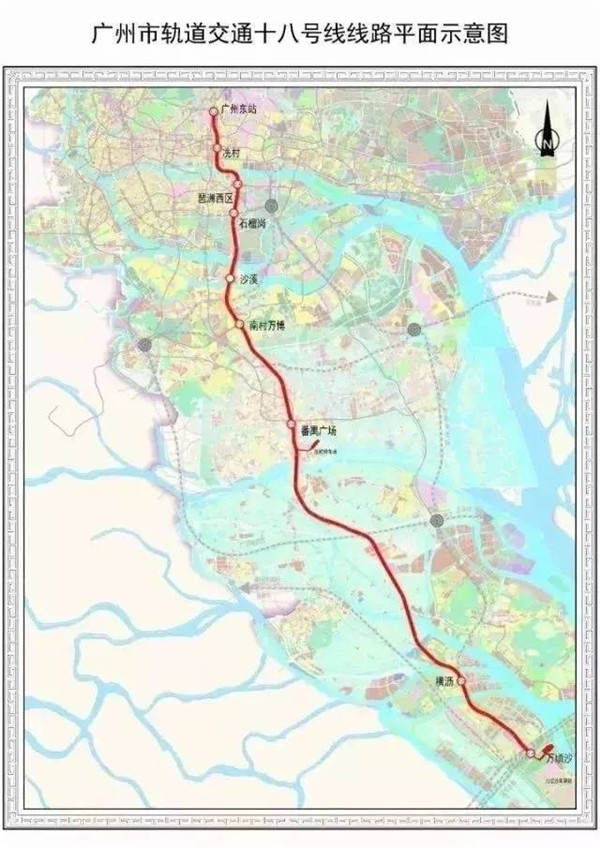 这意味着,18号线未来将自北往南串起白云机场、广州东站、南沙万顷沙三大交通枢纽。