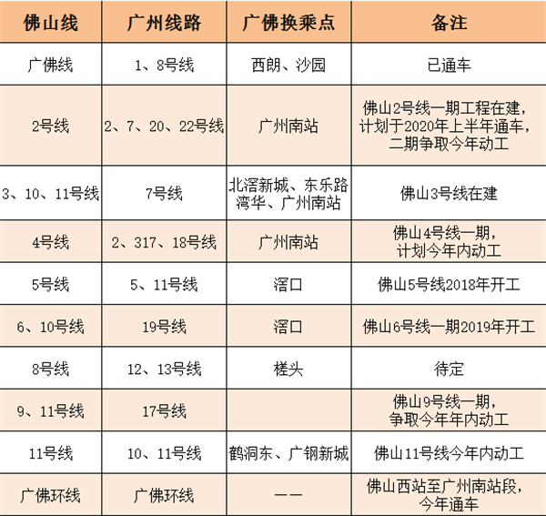 广佛两市轨道交通衔接通到一览表