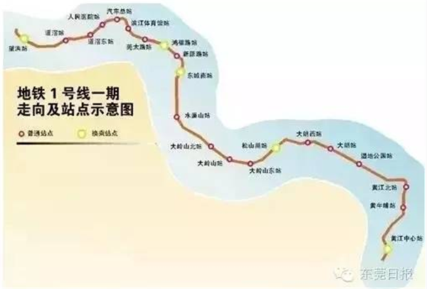 东莞1号线站点图。