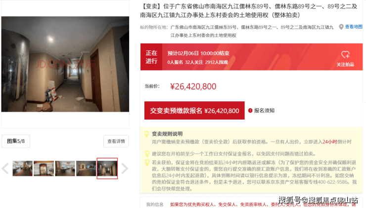近日,位于广东省佛山市南海区九江儒林东89号、儒林东路89号之一、89号之二及南海区九江镇九江办事处上东村委会的土地使用权(整体拍卖)登上法拍平台,将于2月6日开拍,起拍价约2.64亿,比第一次拍卖降价约66…