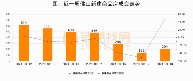 【佛山成交日报】09月18日新房成交204套、二手房216套;涨价房源4套