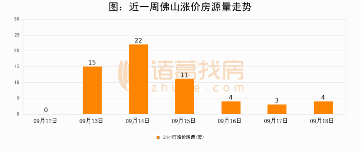 根据诸葛找房数据显示,佛山24小时涨价房源量为4套,较09月17日增加1套,环比上涨33.3%。与此同时,涨价房源占比小幅扩大,业主信心有所提升。