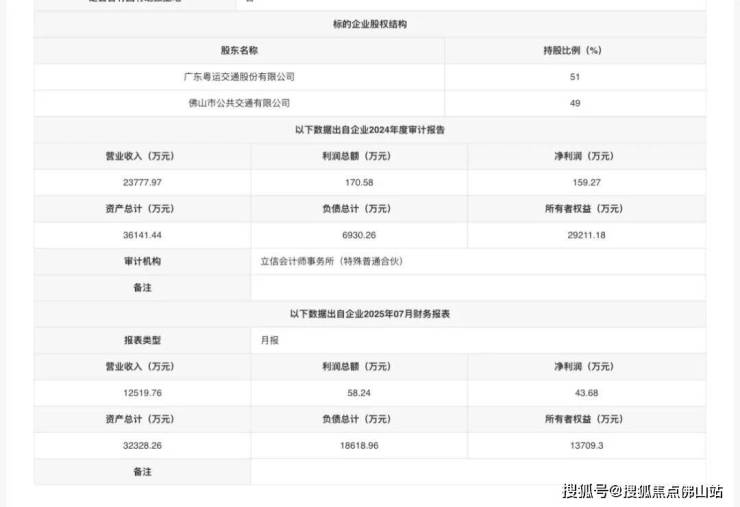 但从南方联合产权交易中心发出的一宗交易中,可以了解到佛山市粤运公共交通有限公司的营收数据。
