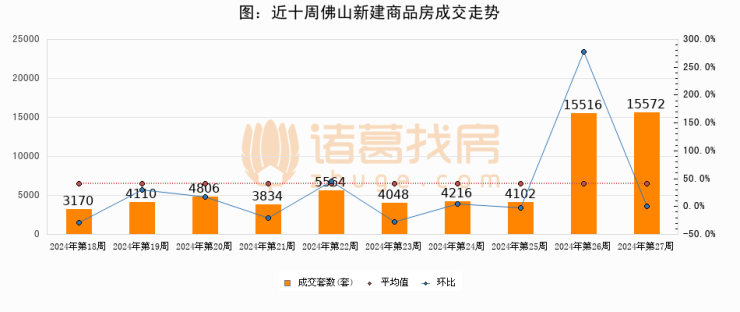 【佛山成交周报】第27周新房成交15572套,二手房3358套,涨价房源231套