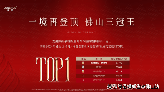 从6月首开至今,龙湖佛山·御湖境网签金额、成交套数(2024佛山单价2万以上项目)、销售面积(2024佛山单价2万以上项目)位列佛山榜首,始终霸榜佛山三冠王,成为佛山首屈一指的层峯争藏项目。