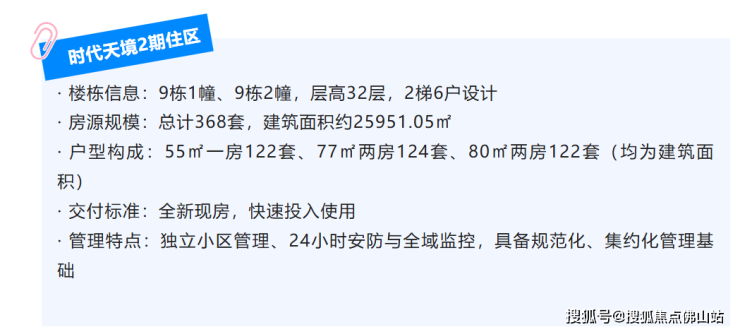 近日,时代天境368套住宅公开招商,涉及小区两栋楼,分别为9栋1幢、9栋2幢,层高32层,2梯6户。