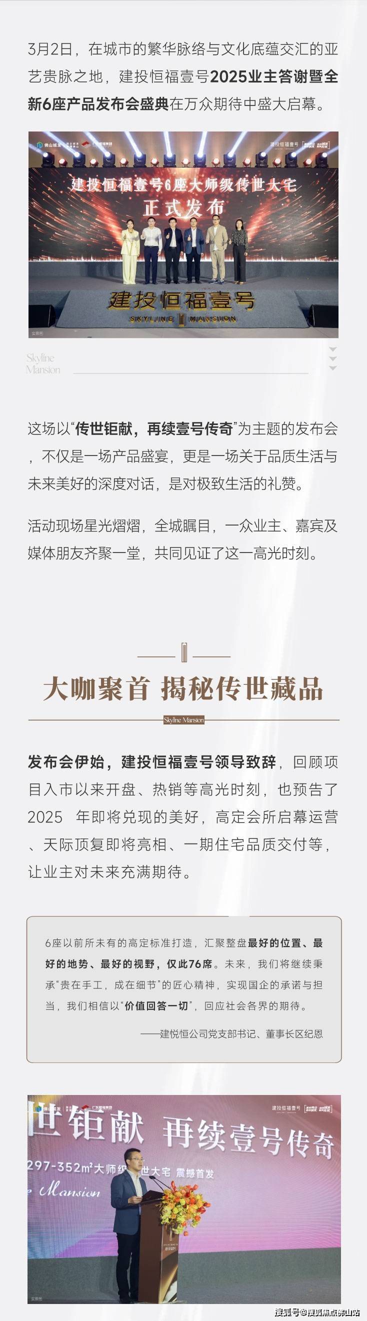 建投恒福壹号丨藏品级楼王震撼发布 再续壹号传奇