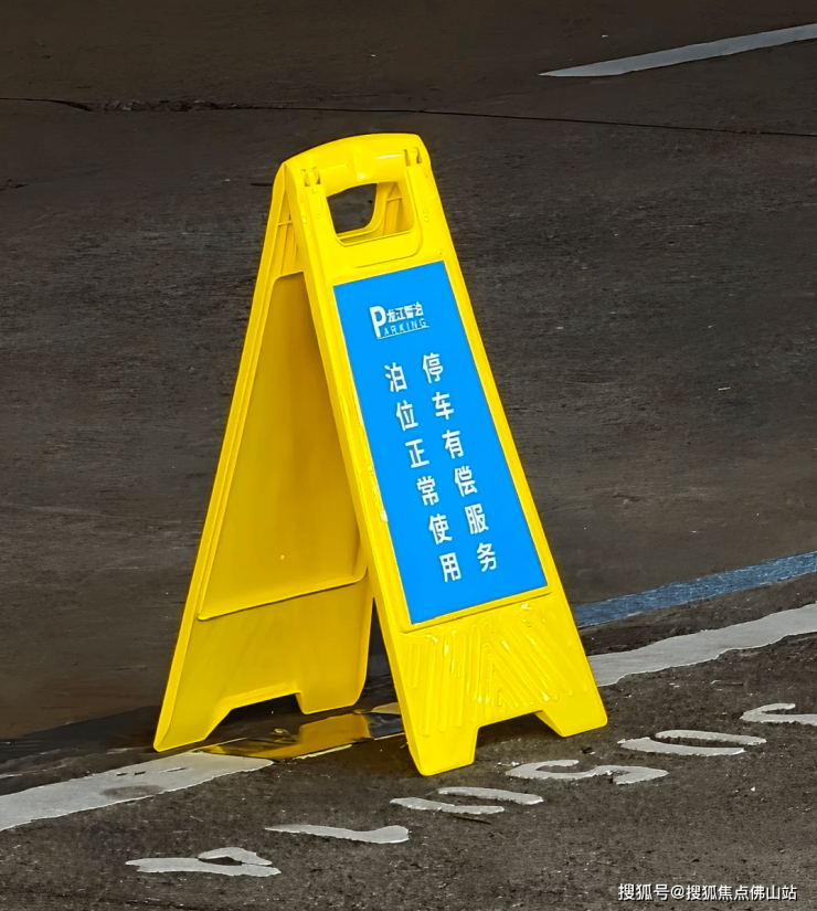 龙江文化广场附近的空置停车位,摆放了不少立牌,上面写着“泊位正常使用,停车有偿服务”。