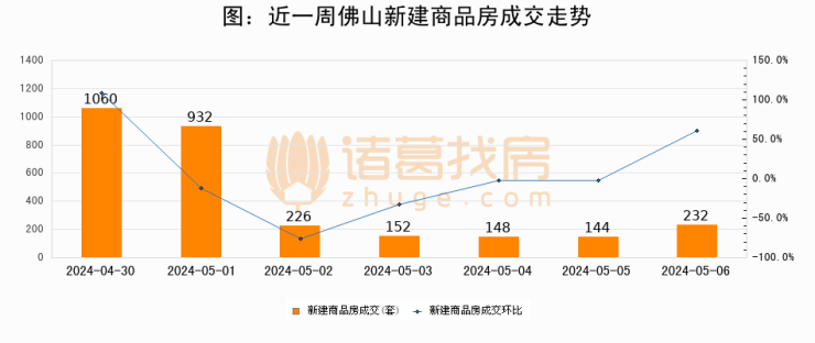 【佛山成交日报】05月06日新房成交232套、二手房364套;涨价房源1套