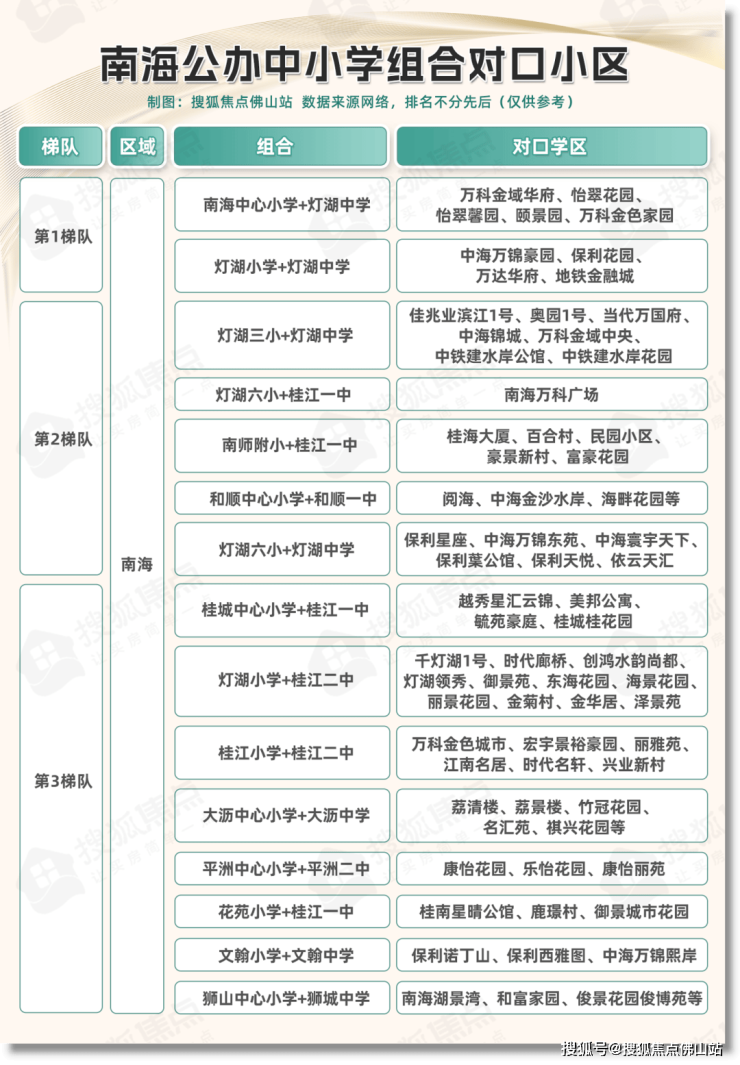 小狐整理出南海公办中小学组合梯队 ,以及对口的学区房 (以桂城为主) 。