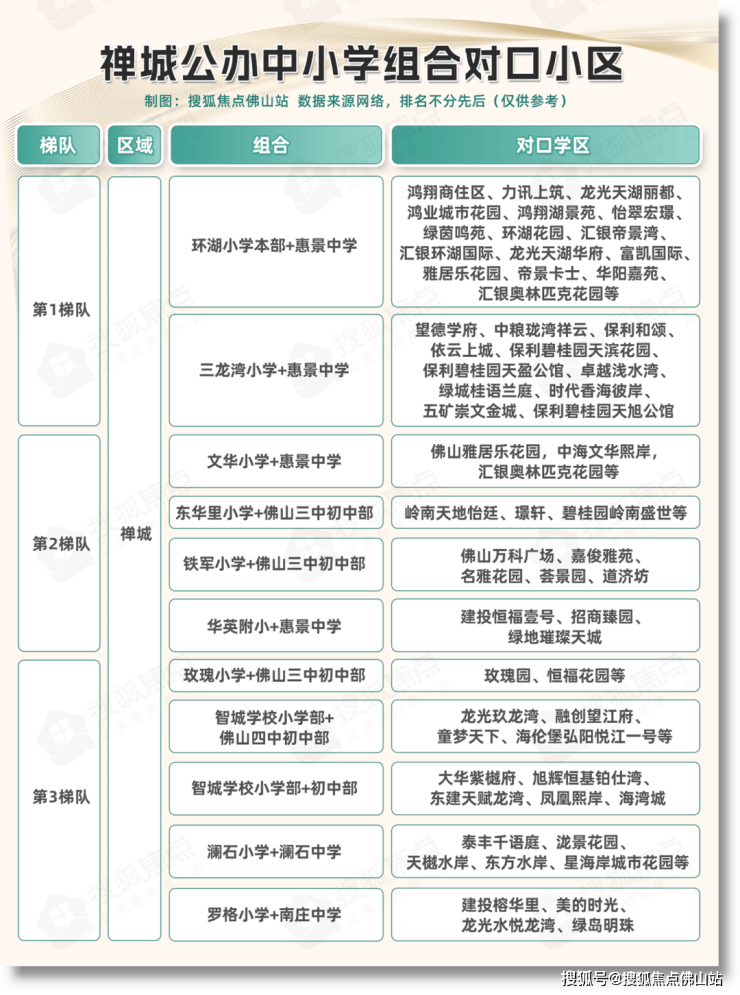 小狐整理出禅城公办中小学组合梯队 ,以及对口的学区房。