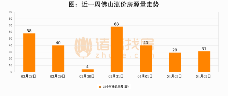 根据诸葛找房数据显示,佛山24小时涨价房源量为31套,较04月02日增加2套,环比上涨6.9%。与此同时,涨价房源占比小幅扩大,业主信心有所提升。